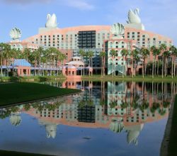 Описание: Отель состоит из двух зданий - Swan и Dolphin с общей большой территорией на берегу большого живописного озера. Отель выполнен в современном стиле по проекту дизайнера Michael Graves с использованием скульптур, фресок, фонтанов, специально созданных светильников, мебели, произведений современного искусства.